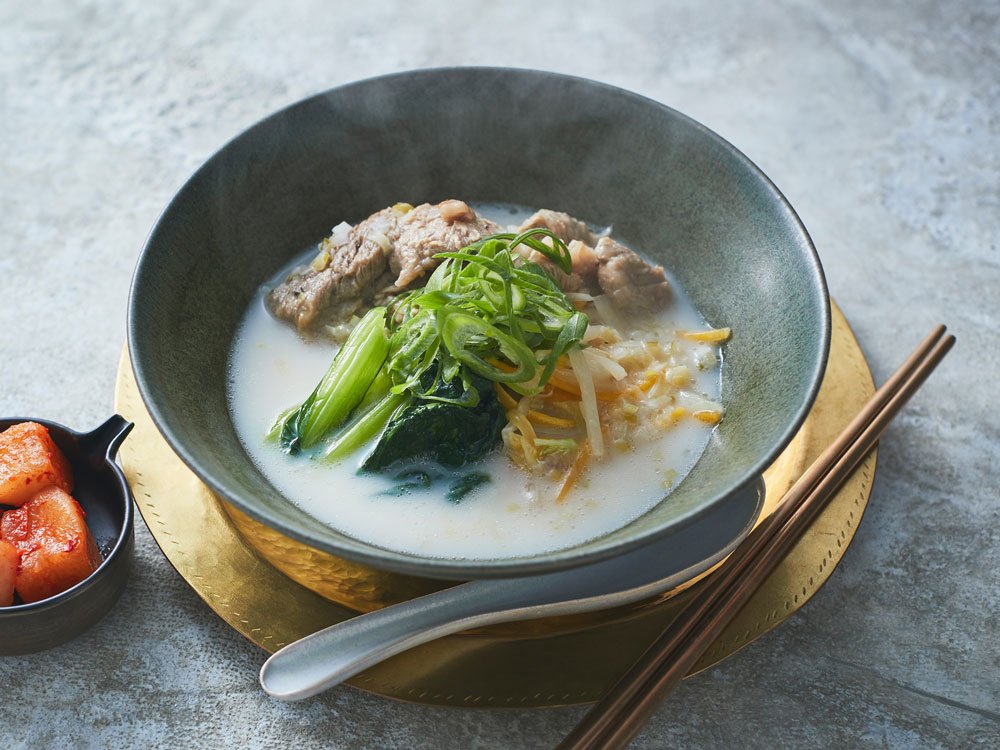 韓国で親しまれる、旨みが効いた牛肉スープ。黒胡椒ソースで和えた牛肉と、白菜・黄人参・小松菜・青ねぎ・カクテキなど彩り豊かな野菜を一緒に楽しめます。温めてお召し上がりください。