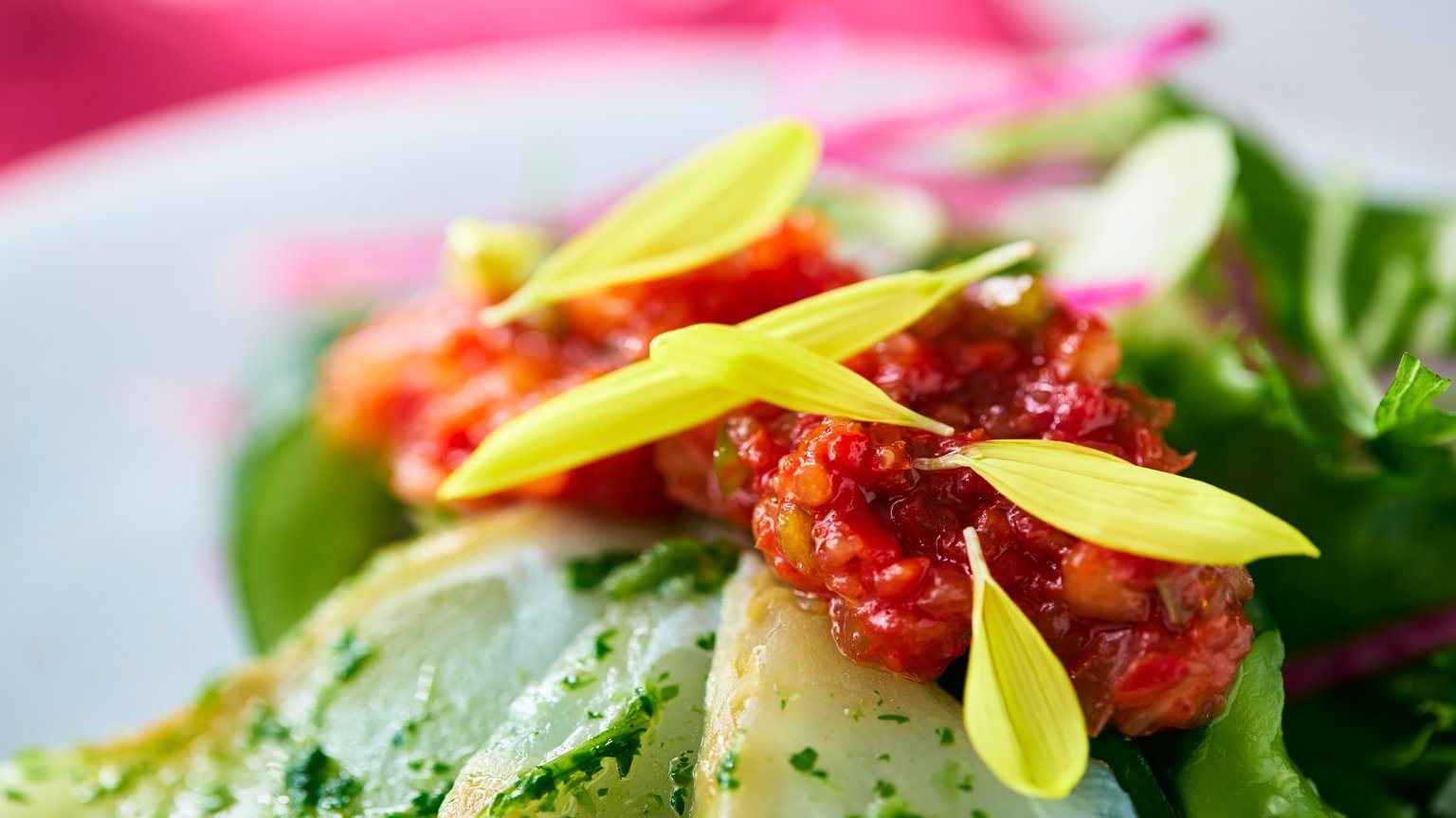 ヒラメ本来の淡白で上品な味わいを引き立てるため、サルサは辛み・香り・旨みのバランスを丁寧に設計しました。